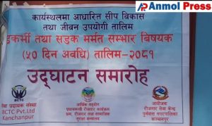 कञ्चनपुरको पुनर्वासमा सुचिकृत बेरोजगारहरुका लागी ५० दिने डकर्मी तथा सडक मर्मत सम्भार तालीम चलीरहेको छ । कार्यस्थलमा आधारीत सिप बिकास तथा जीवन उपयोगी तालीम रोजगार सेवा केन्द्र पुनर्वासको आयोजनामा सञ्चालन गरीएको रोजगार संयोजक शुशिला देउवाले जानकारी दिनुभयो । प्रधानमन्त्रि रोजगार कार्यक्रम श्रम, रोजगार तथा सामाजीक सुरक्षा मन्त्रालयको आर्थीक सहयोग र सेवा प्रदायक संस्था बिसीटिसी कञ्चनपुरको सहयोगमा तालीम चलीरहेको उहाँले जानकारी दिनुभयो ।