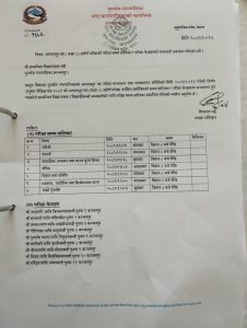 फाल्गुन २९ र चैत्र १ गते होली पर्ब परेको र चैत्र २ गते शनिबार परेकाले बिचमा ३ दिन बिदा छ । यस्तै परिक्षा चैत्र ३ गते आइतबार बाट निरन्तर चल्ने छ । चैत्र ३ गते आइतबार गणीत र चैत्र ४ गते सोमबार बिज्ञान तथा प्रविधि बिषयको परिक्षा हुने शाखाका प्रमुख भट्टले बताउनुभयो ।