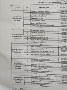सरस्वती, रामबुद्ध र, शान्ति माध्यामीक बिद्यालय, मालिका र सरस्वती आधारभुत बिद्यालयका साथै नवयुुग बिद्या निकेतन र कञ्चन न्यु ब्लुम फिल्ड एकेडमी गरी ७ बिद्यालयको परिक्षा केन्द्र जनशक्ती आधारभुत विद्यालय बिर बलभद्र वस्ती पुनर्वास १ लाई तोकीएको छ ।