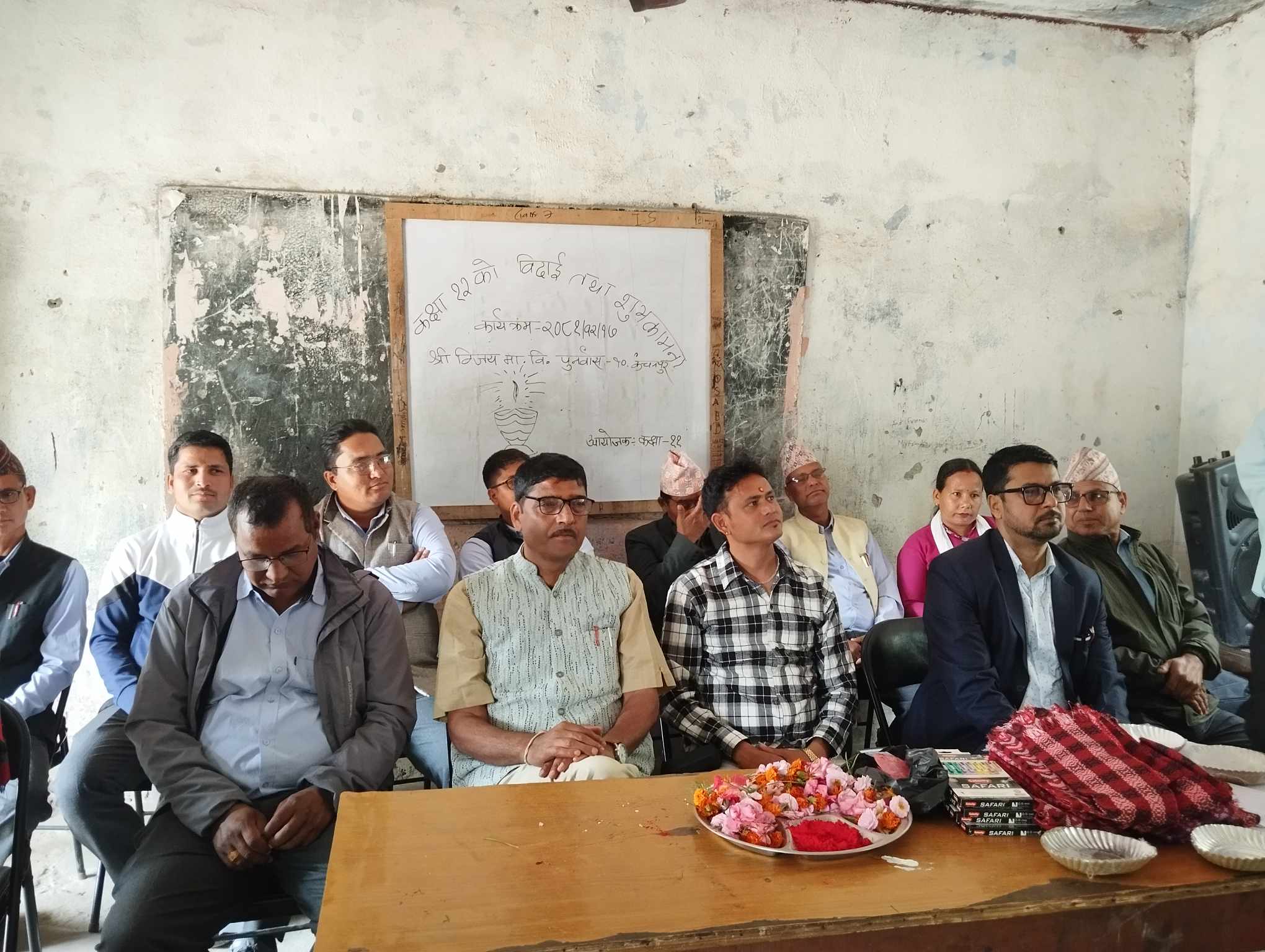 कञ्चनपुरको पुनर्वास नगरपालिका–१० मा रहेको विजय माध्यामीक बिद्यालयले कक्षा १२ का विद्यार्थीहरूलाई बिदाइ गरेको छ । बिद्यालय र कक्षा ११ को आयोजनामा कक्षा १२ का विद्यार्थीहरूलाई आउदै गरेको परिक्षाको शुभकामना सहित बिदाइ गरीएको हो । बिदाई कार्यक्रममा बोल्दै शिक्षिका लक्ष्मी उप्रेतीले विद्यार्थीहरूलाई आगामी शैक्षिक यात्राका लागि शुभकामना दिनुभयो । बिद्यार्थीहरुले परिश्रम, अनुशासन र इमानदारीता साथ अध्ययन गरे पक्कै सफलता मिल्नेमा दुइमत रहेको उहाँले बताउनुभयो ।