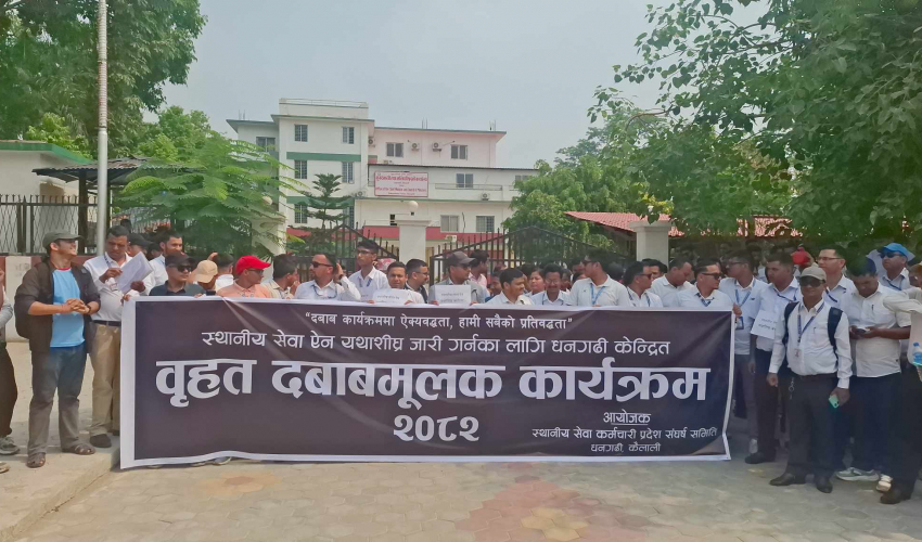 सुदूरपश्चिम प्रदेशका ८८ वटै स्थानीय तहका कर्मचारीहरू स्थानीय सेवा ऐन ल्याउन माग गर्दै चरणबद्ध आन्दोलनमा उत्रिएका छन्। गत माघमा प्रदेश सभामा दर्ता गरिएको ऐन अहिलेसम्म पारित नभएको भन्दै कर्मचारीहरू आइतवार बिहान मुख्यमन्त्री कार्यालय अगाडि धर्नामा बसेका हुन्। संघर्ष समितिका संयोजक झलक दौल्यालका अनुसार ऐन अभावका कारण कर्मचारीको वृत्ति विकास प्रभावित हुनुका साथै स्थानीय तहको कामसमेत अवरुद्ध भएको छ। लामो समयदेखि एउटै स्थानीय तहमा निरन्तर बस्नुपरेको र हस्तक्षेपको सामना गर्नुपरेको गुनासो गर्दै उनीहरूले अत्यावश्यक सेवा बाहेक सबै सेवा बन्द गरेर आन्दोलन थालेका हुन्। प्रदेश सरकारले पटकपटक आश्वासन मात्रै दिएको भन्दै कर्मचारीहरूले ऐन पारित नभएसम्म आन्दोलन जारी राख्ने चेतावनी दिएका छन्।