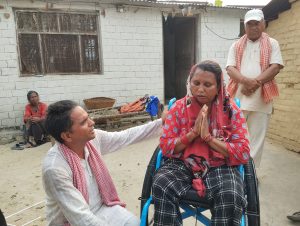 मंगलबार उपाध्यायले पुनर्वास–११ स्थित ४३ बर्षीय लिला देबि सिंहलाई ह्वील चियर वितरण गर्नुभएको छ । ३ बर्ष अघि घाँस काट्ने क्रममा रुखबाट लडेर ओछ्यानमै थलिएको लिला देबि सिंहलाई ह्वील चियरले ओछ्यानबाट उठ्ने वातावरण बनाएको छ । दैनिक जीवनयापनमा कठिनाइ बेहोर्दै आएकी लालीदेवी सिंहलाई ह्वील चियर प्राप्त भएपछि परिवारमा सहजता हुने भन्दै खुसी व्यक्त गर्नुभयो । उहाँले नेता उपाध्यायलाई धन्यवाद व्यक्त गर्नुभयो ।